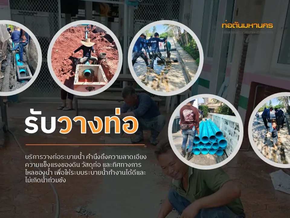 บริการวางท่อน้ำ ท่อระบายน้ำ โดยคำนึงถึงความลาดเอียง ความแข็งแรงของดิน วัสดุท่อ และทิศทางการไหลของน้ำ เพื่อให้ระบบระบายน้ำทำงานได้ดี และไม่เกิดน้ำท่วมขัง